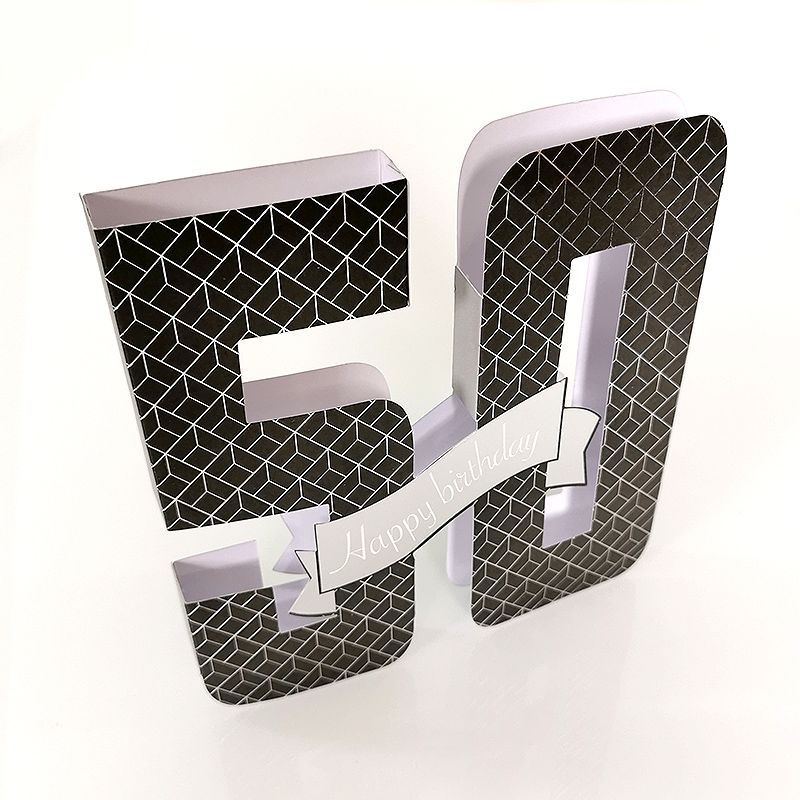 Táto úžasná 3D karta je určená na narodeniny, či už ako gratulácia alebo ako dekorácia. Na zadnú stranu môžete napísať venovanie, vložiť do obálky a poslať alebo odovzdať osobne. Karta v tvare čísla výročia sa dá položiť na rovný povrch a vytvorí tak peknú dekoráciu osláv narodenín.