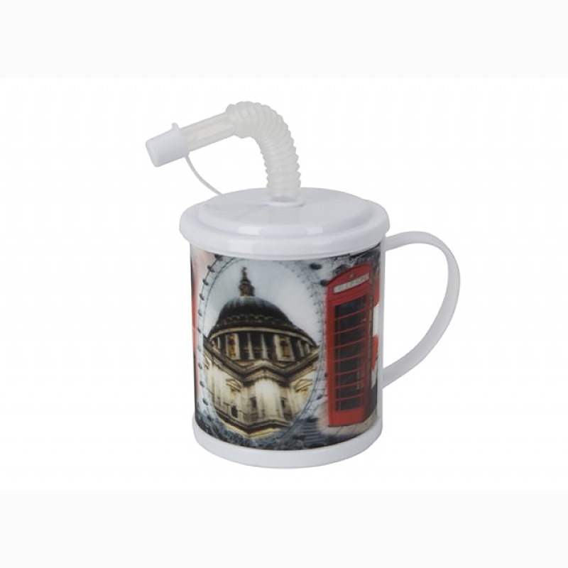 Plastový hrnček s vyobrazením londýnskej kultúrnej pamiatky v 3D efekte.