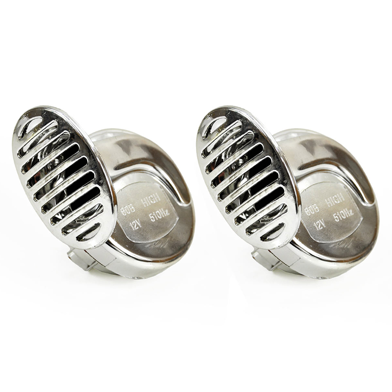 Klaksón 12V - slimáky chrómové v počte 2ks je určený pre osobné automobily. Napájacie napätie je 12V DC a obidva klaksóny sú chrómované.