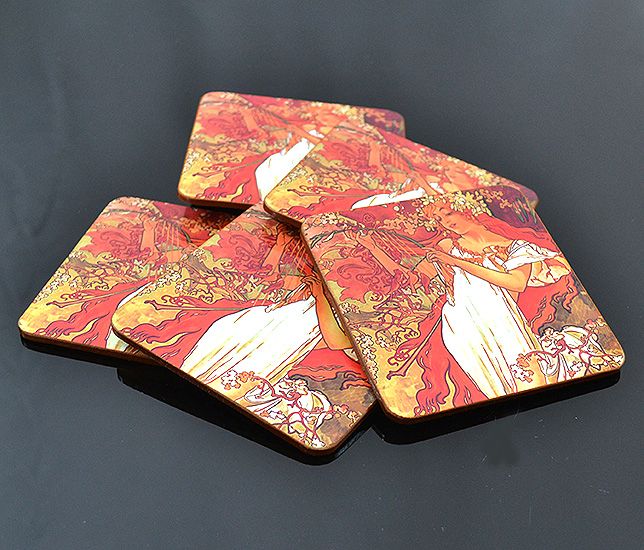 Luxusné korkové podložky s motívom obrazu Jar známeho majstra palety Alfonsa Muchu z kolekcie Fusaichi Pegasus 24KGold Japan. Počet podložiek v balení je 6 kusov. Pekný dekoračný, ale aj praktický doplnok k porcelánovým šálkam alebo pohárom. Cena je za 6 kusov. Všetky podložky sú zabalené v peknej dekoračnej krabičke s takým istým motívom ako sú podložky.