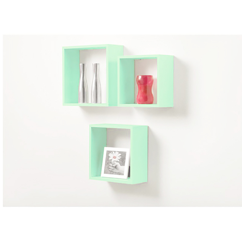 Špecifikácia - počet poličiek : 3ks; rozmery : 30 x 30 x 11,7cm - 27 x 27 x 11,7cm - 24 x 24 x 11,7cm; max. zaťažiteľná hmotnosť na poličku : 5kg; materiál - MDF; farba : zelená pastelová, trocha svetlejšia ako na fotografii; značka : B!; krajina pôvodu - Holandsko;
