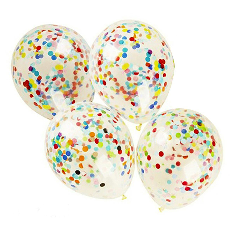 Sada 4 kusov latexových balónov v jasných, priehľadných farbách. Balóny boli naplnené viacfarebnými konfetami. Sú perfektné na svadobné hostiny a iné špeciálne akcie - nielen za účasti detí!