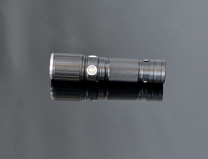 Praktická prenosná baterka vyrobená z kovu s veľmi silným LED studeným svetlom a dlhou výdržou nabitia. Má nabíjateľnú batéria, ktorá sa nabíja pomocou USB konektora, teda nabiť si ju môžete aj bez prístupu k elektrickej energii, napr. auto, z laptop, powerbank atď. V prípade, že sa batéria vybije, môžete ju nahradiť aj 4 mikrotužkovými batériami. Svietidlo má ručný zoom. Má klasické studené svietenie s tromi režimami, ale na boku tela baterky sa nachádza červená led dióda s dvomi režimami svietenia, ktorú možno použiť v ako výstrahu pred nebezpečnou situáciou, napr. na ceste pri pokazenom aute alebo havárii, na poľovačke, pri turistike a podobne. Na bočnej strane baterky je klip, ktorým si ju môžete pripevniť k opasku alebo nohaviciam.