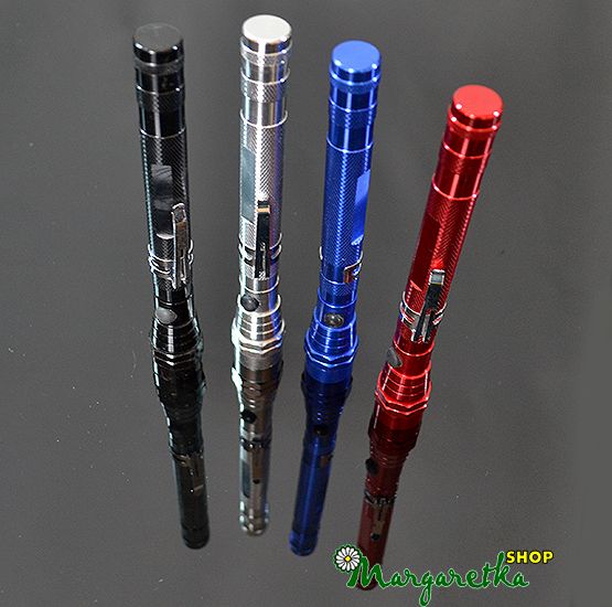 Rozmery a parametre: dĺžka : 17 cm - 56 cm, priemer - 1,5cm - 2,2 cm, 3 LED žiarovky, materiál - hliník, napájanie - batérie LR44.