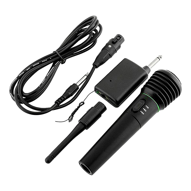 Kompaktný bezdrôtový mikrofón so stanicou a káblom na pripojenie. Ideálne na karaoke vystúpenia, ale aj na nahrávanie spevu, do konferenčných miestností, na svadby alebo na prednes. Vybavený štandardným 6,5 mm jack konektorom a bezdrôtovou stanicou s vysielačom. Možnosť použiť mikrofón ako káblový (súčasťou balenia je dlhý kábel).