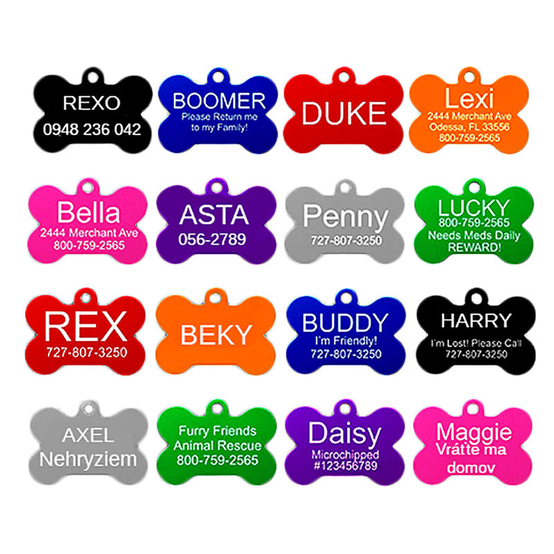 Ponúkame Vám známku v tvare kosti pre psa, ktorá je vyrobená z eloxovaného hliníka, do ktorej Vám ZADARMO vygravírujeme akýkoľvek text alebo znak (meno psa, číslo telefónu, adresa atď.), čo určite pomôže pri identifikácii Vášho psa, mačky, alebo iného zvieratka. Známku pomocou karičky, krúžku alebo drôtika veľmi jednoducho pripevníte psíkovi na obojok. Známka je veľmi ľahká, a preto zvieratko nepocíti žiadnu zbytočnú záťaž. Známku pre psa ponúkame v rôznych farbách, každému podľa vlastného vkusu. Farbu si prosím zaškrtnite v číselníku.