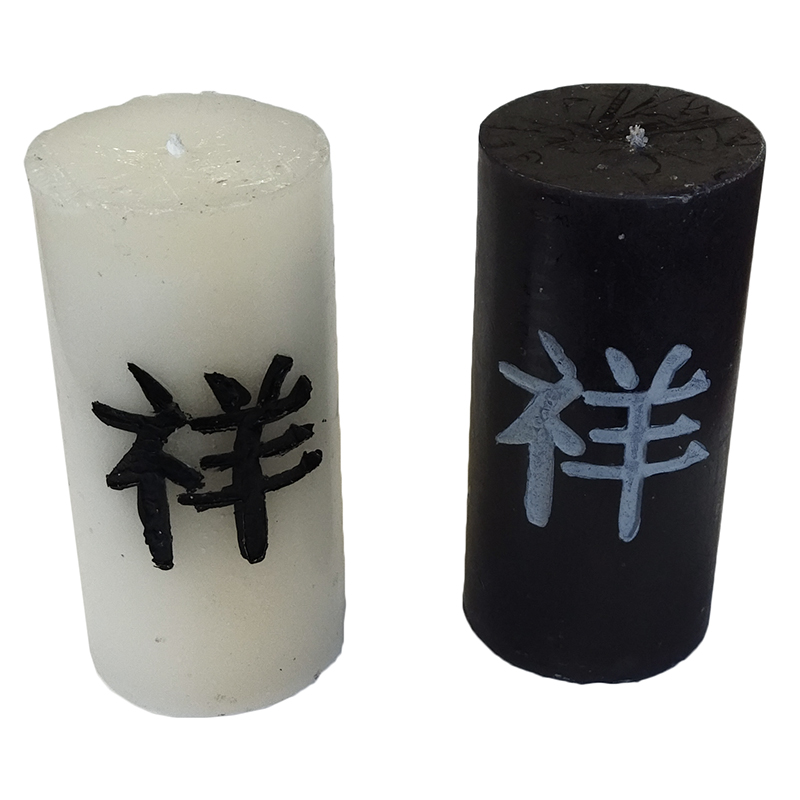 Pekná dekoračná sviečka s čínskym symbolom čiernej alebo bielej farby.
