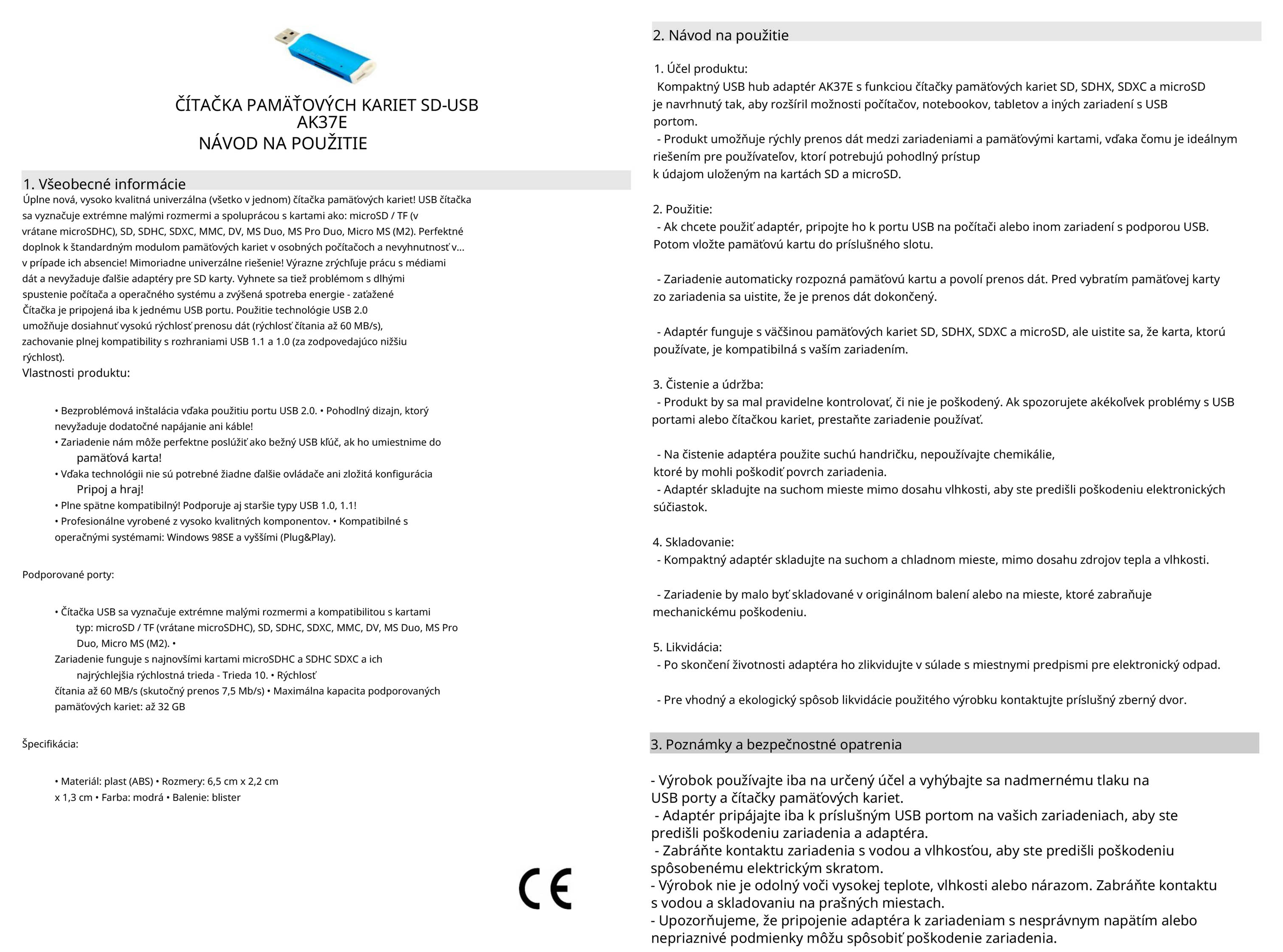 Návod na použitie čítačky pamäťových kariet