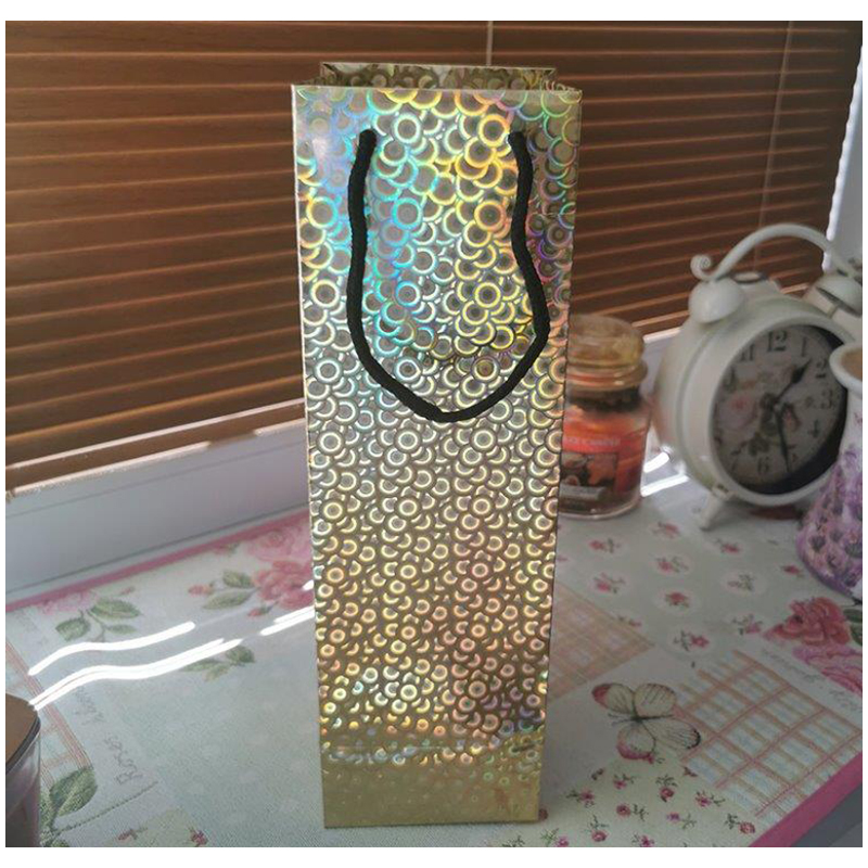 Holografická darčeková taška na fľašu s alkoholom alebo vínom.