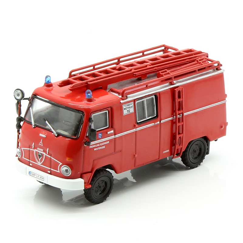Model historického požiarnického vozidla východonemeckej automobilky - FAUN F 24 DL 320-F. Model je vyrobený z kovu a má plastové doplnky. Hasičské autíčko je vyrobený v pomere 1:72. Jeho dĺžka je 8 cm. Model je pripevnený na podstavci a zabalený v blistri. Zadarmo k nemu dostávate aj časopis s fotkami a zaujímavosťami o tomto hasičskom aute. Časopis je v nemeckom jazyku.