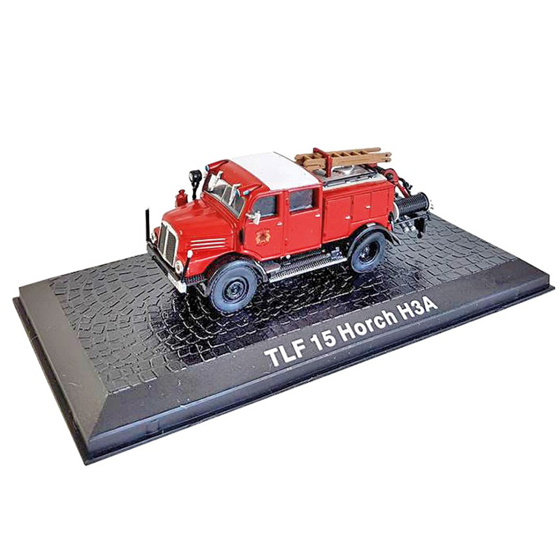 Model historického požiarnického vozidla nemeckej predvojnovej automobilky - HORCH H3A. Model je vyrobený z kovu a má plastové doplnky. Hasičské autíčko je vyrobený v pomere 1:72. Jeho dĺžka je 9cm. Model je pripevnený na podstavci a zabalený v blistri.