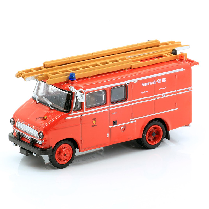 Model historického požiarnického vozidla nemeckej automobilky LF 8 Opel 1,9t. Model je vyrobený z kovu a má plastové doplnky. Hasičské autíčko je vyrobený v pomere 1:72. Jeho dĺžka je 7,5cm. Model je pripevnený na podstavci a zabalený v blistri.