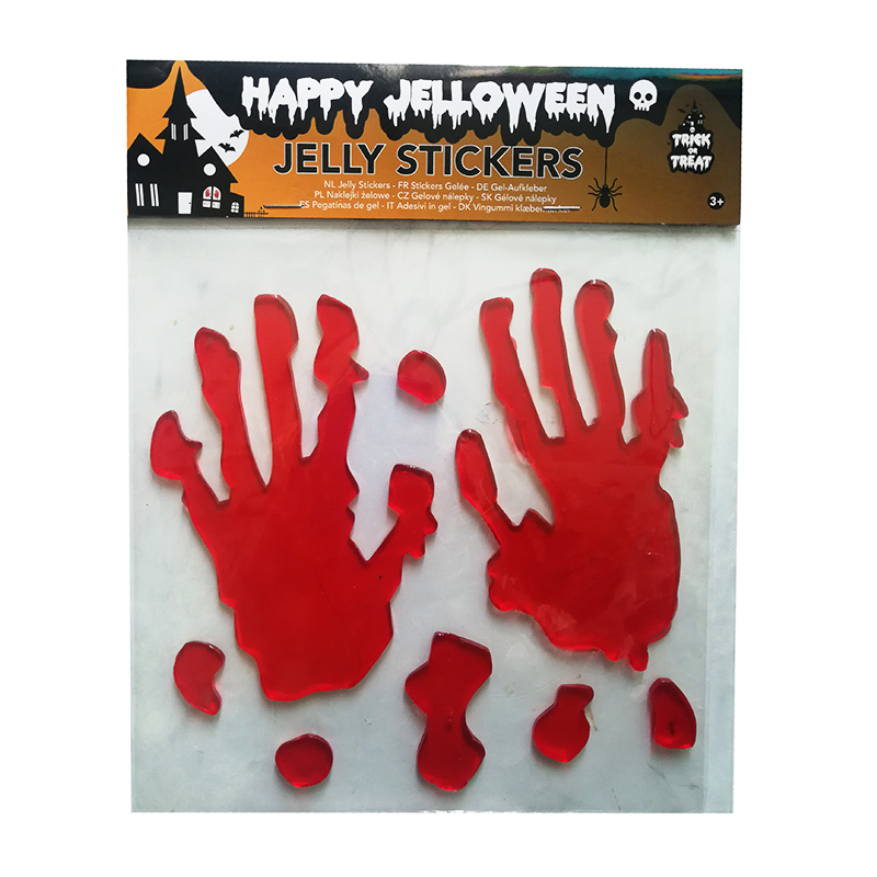Gélová nálepka na okno alebo zrkadlo - krvavé ruky s kvapkami krvy vystraší tamkmer každého. Vhodná na rôznu párty, karneval či oslavu.
