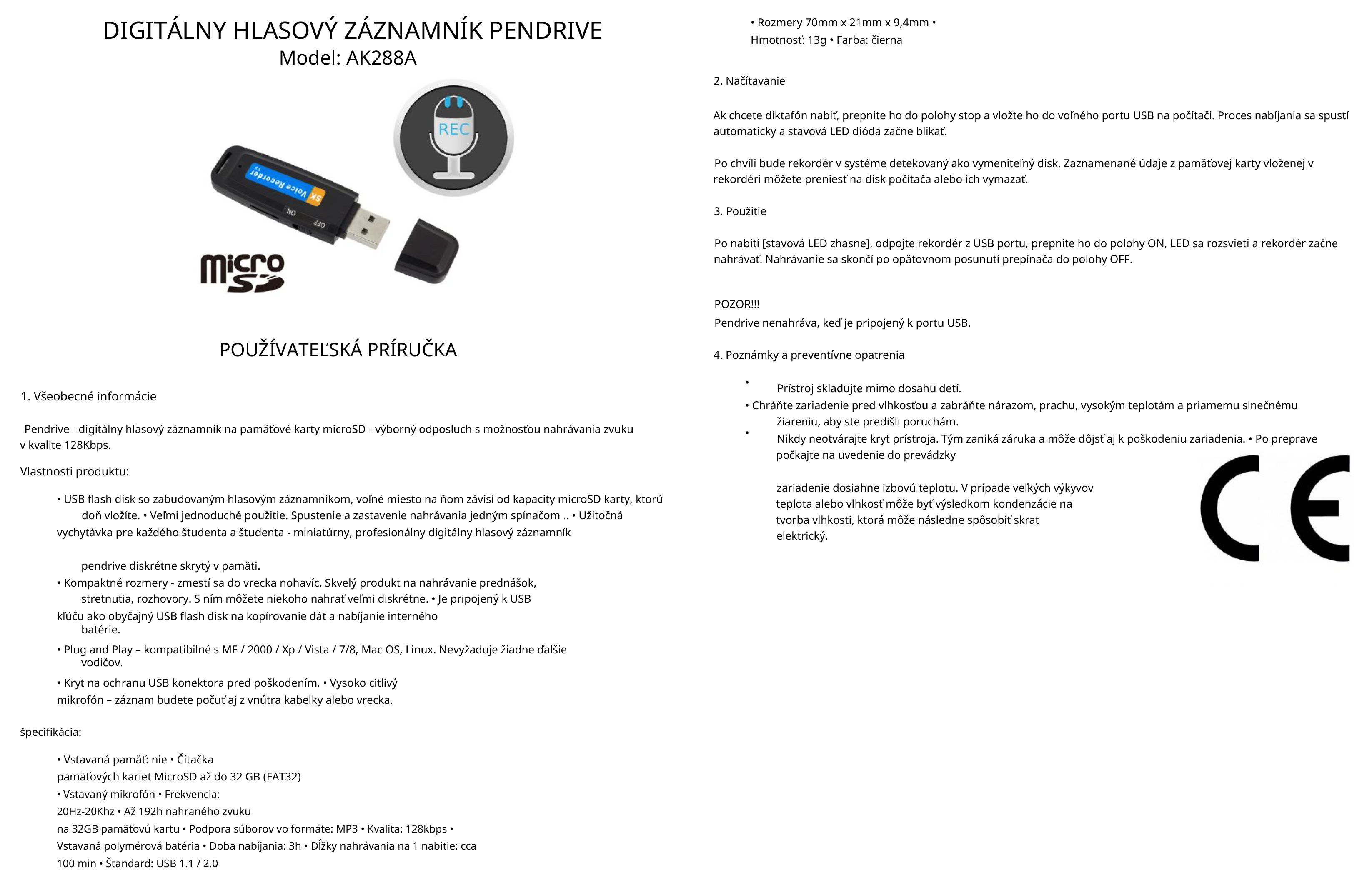Digitálny diktafón USB micro SDSkladom12,99 €/ ks10,56 € bez DPH