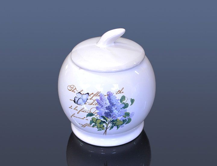 Uzatvárateľná keramická dóza s kvalitnou povrchovou úpravou. Dóza je dekorovaná kvetmi orogvánu a na povrchu má lesklú lazúru. Veko dózy je zatláčacie. Praktický a dekoračný prvok vhodný do kuchyne, ale aj do exteriéru. Obsah dózy je 250ml.
