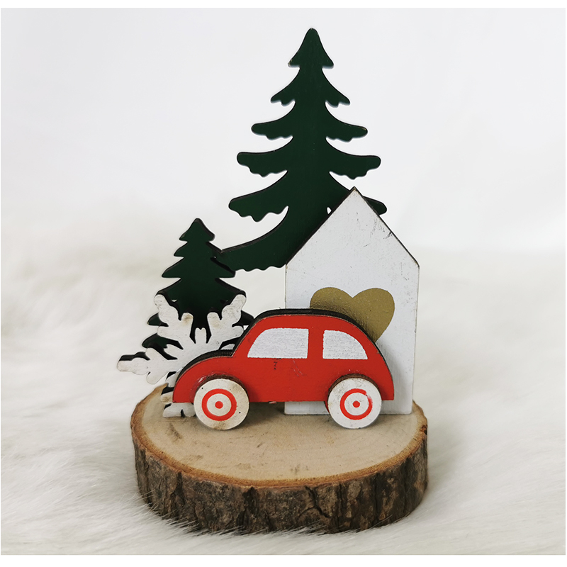 Nádherná Vianočná dekorácia - autíčko a stromčeky na dreve. Celá dekorácia je vyrobená z prírodného dreva a hodí sa ako pekný doplnok do domácnosti počas Vianočného a zimného obdobia.