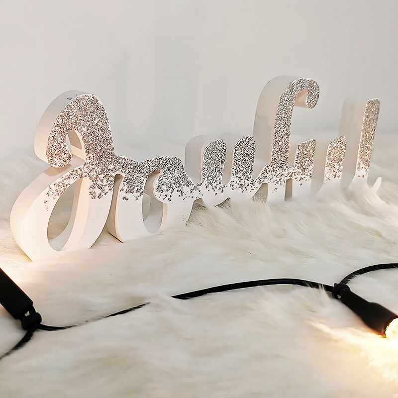Drevený Vianočný nápis Joyful - čo v preklade znamená štastý, rozradostený, prinášajúci radosť. Vhodný ako Vianočný doplnok do domácnosti. Nápis je posýpaný zlatými alebo striebornými trblietkami.