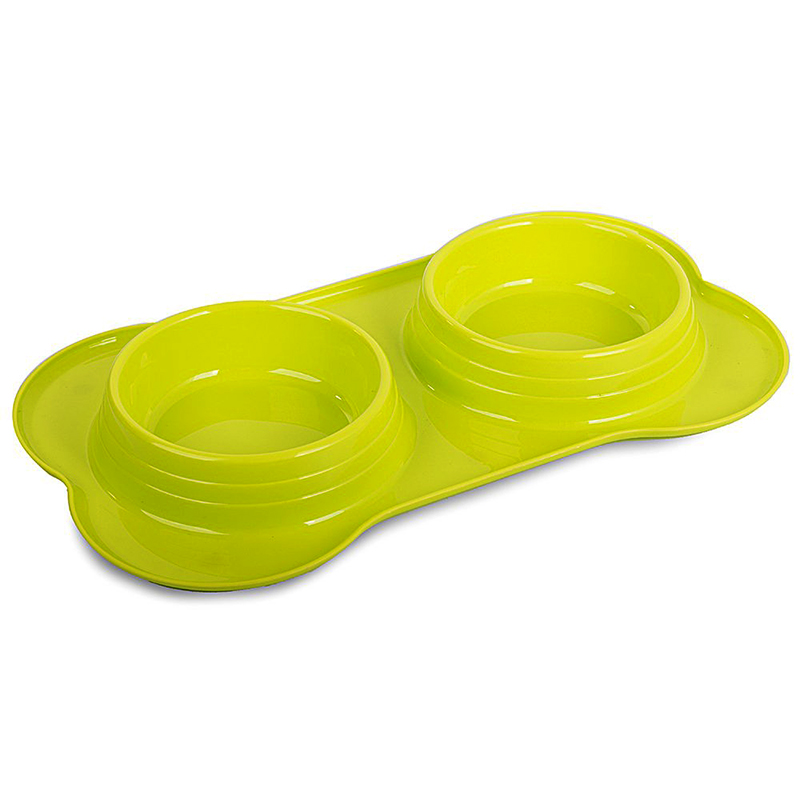 Dvojitá miska na krmivo pre psa zelená 2 x 0,4 L