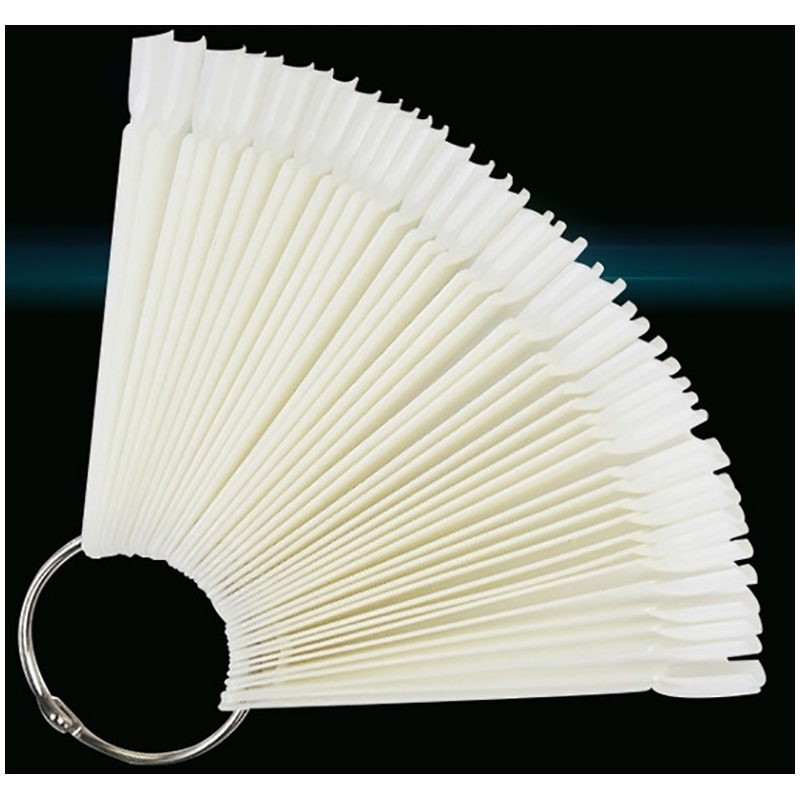 Pohodlný tvar vejára umožňuje jednoduché porovnanie farby alebo vzoru zo šablóny s nechtovou platničkou bez potreby lakovania.