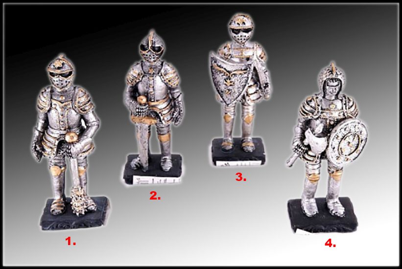 Rytierov netreba nikomu zvlášť predstavovať. Spájajú sa s nimi kadejaké povesti a legendy. Ako bojovníci žili od 8 do 15 storočia nášho letopočtu. Označujeme ich aj ako stredovekých bojovníkov. My Vám ponúkame zmenšené figúrky(sošky) rytierov ako dekoračné predmety Vášho interiéru alebo exteriéru. Vyrobené sú z unikátneho kompaktného materiálu polyston, ktorý vzniká spojením vysokokvalitnej živice a prírodného materiálového plniva. Na výber zo 4 vzorov. Vzor si prosím zaškrtnite v číselníku.