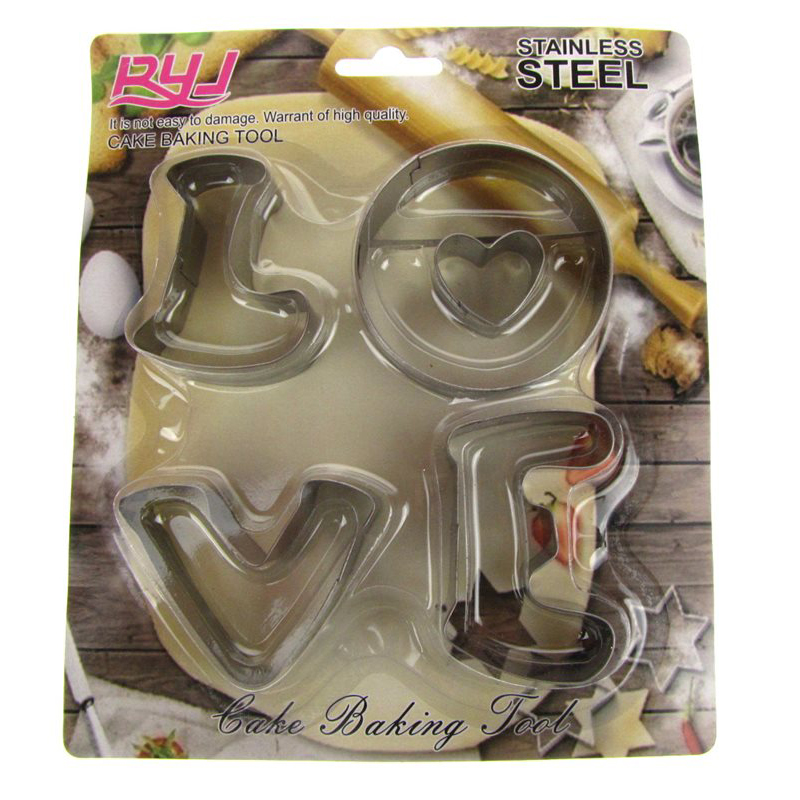 Romantický darček do kuchyne pre zamilovaných - štyri vykrajovačky s nápisom LOVE.