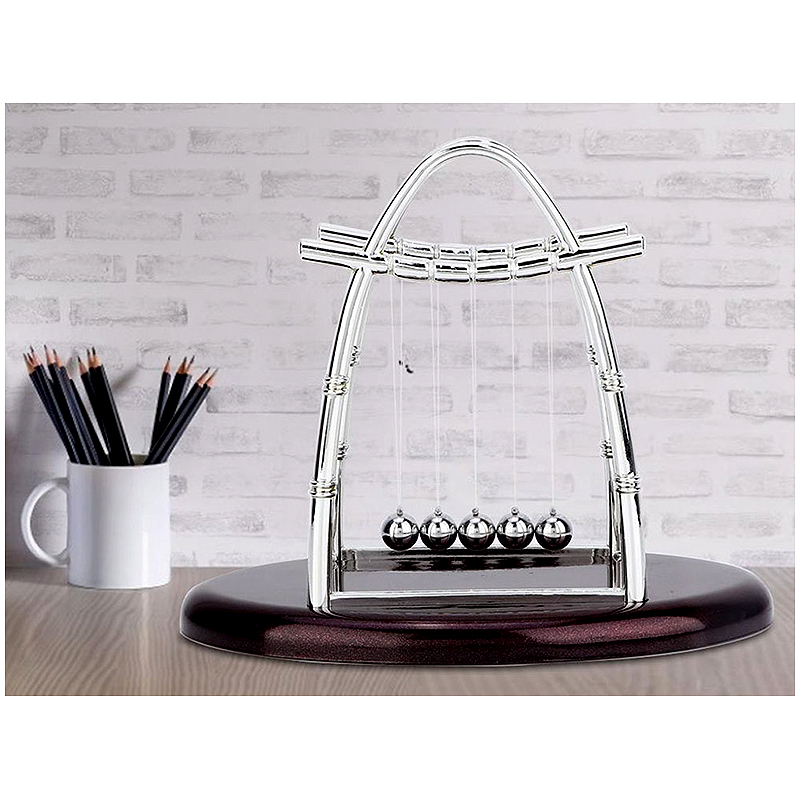 Rozkývajte všetky guľôčky naraz v priečnom smere a pozerajte sa! Kyvadlo funguje na princípe Newtonovej kolísky, ale na rozdiel od nej sa nepohybuje len po jednej čiare, ale vytvára krásny efekt vlny. A ešte k tomu si predstavte rytmický zvuk 5 kovových guľôčok, ktorý Vás okamžite upokojí.