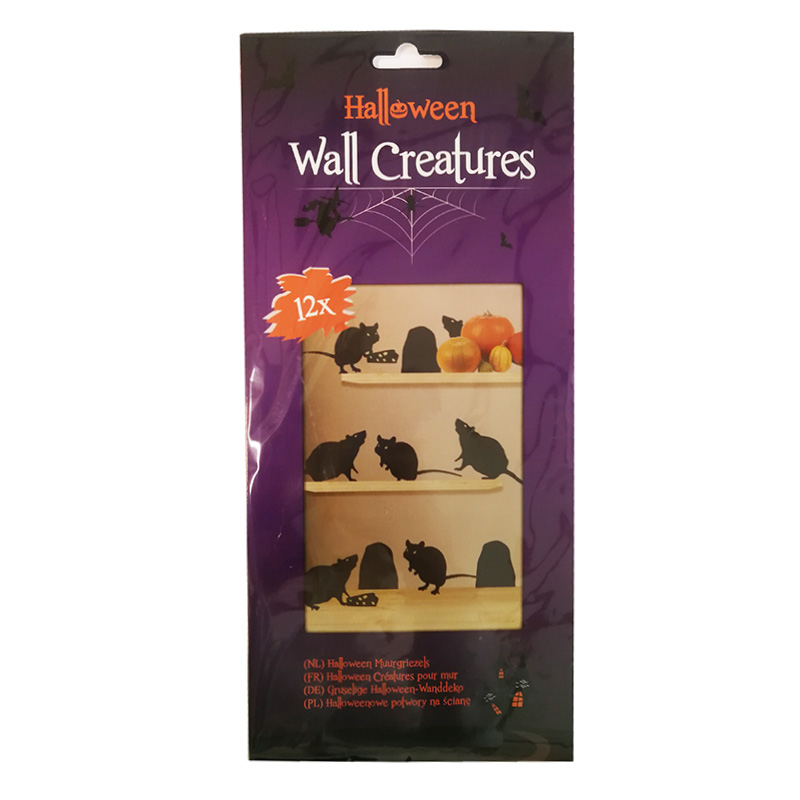 Toto halloweenske balenie obsahuje 12 kusov strašidelných nálepiek na stenu v tvare myši a syra. Lepia sa pomocou bielych lepiacich guľôčok, takže sa potom jednoducho odlepujú zo steny alebo nábytku. Vystrašte vaších hosti tak, že na Vašu halloweensku párty tak skoro nezabudnú :-)