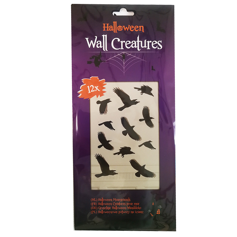 Toto halloweenske balenie obsahuje 12 kusov strašidelných nálepiek na stenu v tvare vtákov. Lepia sa pomocou bielych lepiacich guľôčok, takže sa potom jednoducho odlepujú zo steny alebo nábytku. Vystrašte vaších hosti tak, že na Vašu halloweensku párty tak skoro nezabudnú :-)