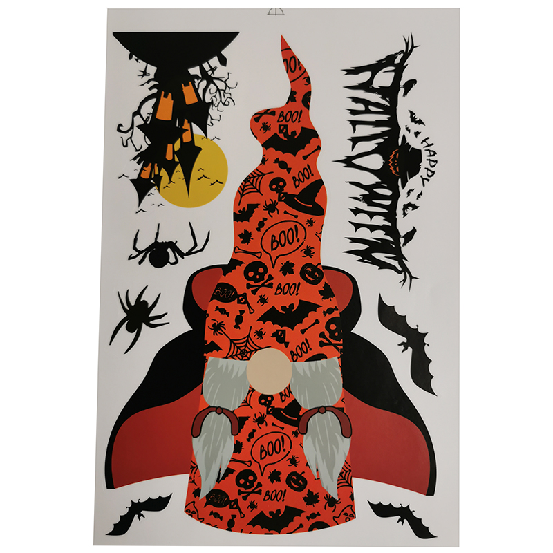 Nálepky na okná Halloween sa používajú bez lepidla, dajú sa ľahko odlepiť a opätovne použiť. Predtým, ako ho nalepíte na okno, musíte okno postriekať trochou vody a potom utrieť, pomocou karty vytlačiť bublinky a vodu.