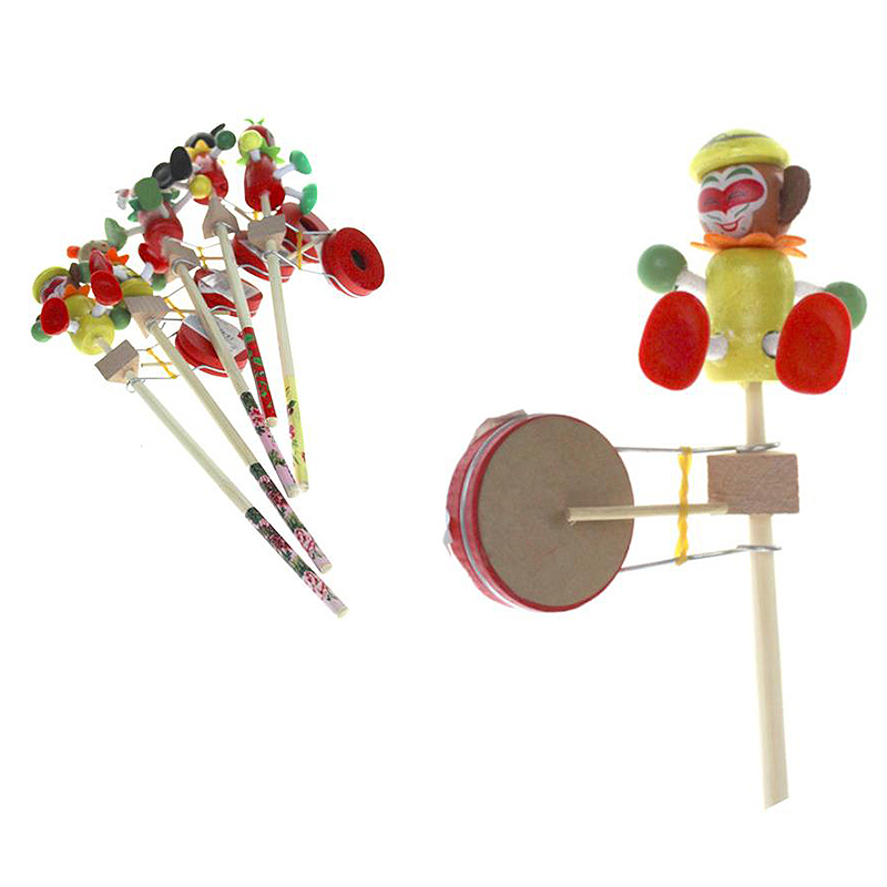 Hračka na paličke - Šašo s bubnom 30 cm. Pri točení paličky hračka vydáva zvuk rýchleho bubnovania.