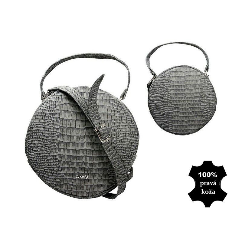 - Kabelka kožená Rovicky okrúla Krokodíl grey