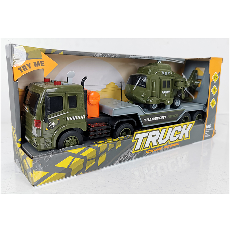 Veľký detský kamión pre každého malého kamionistu. Kamión preváža vojenskú helikoptéru. Na prednej strane má tri tlačidla, ktoré aktivujú zvuky aj svetelné efekty (viď. video).