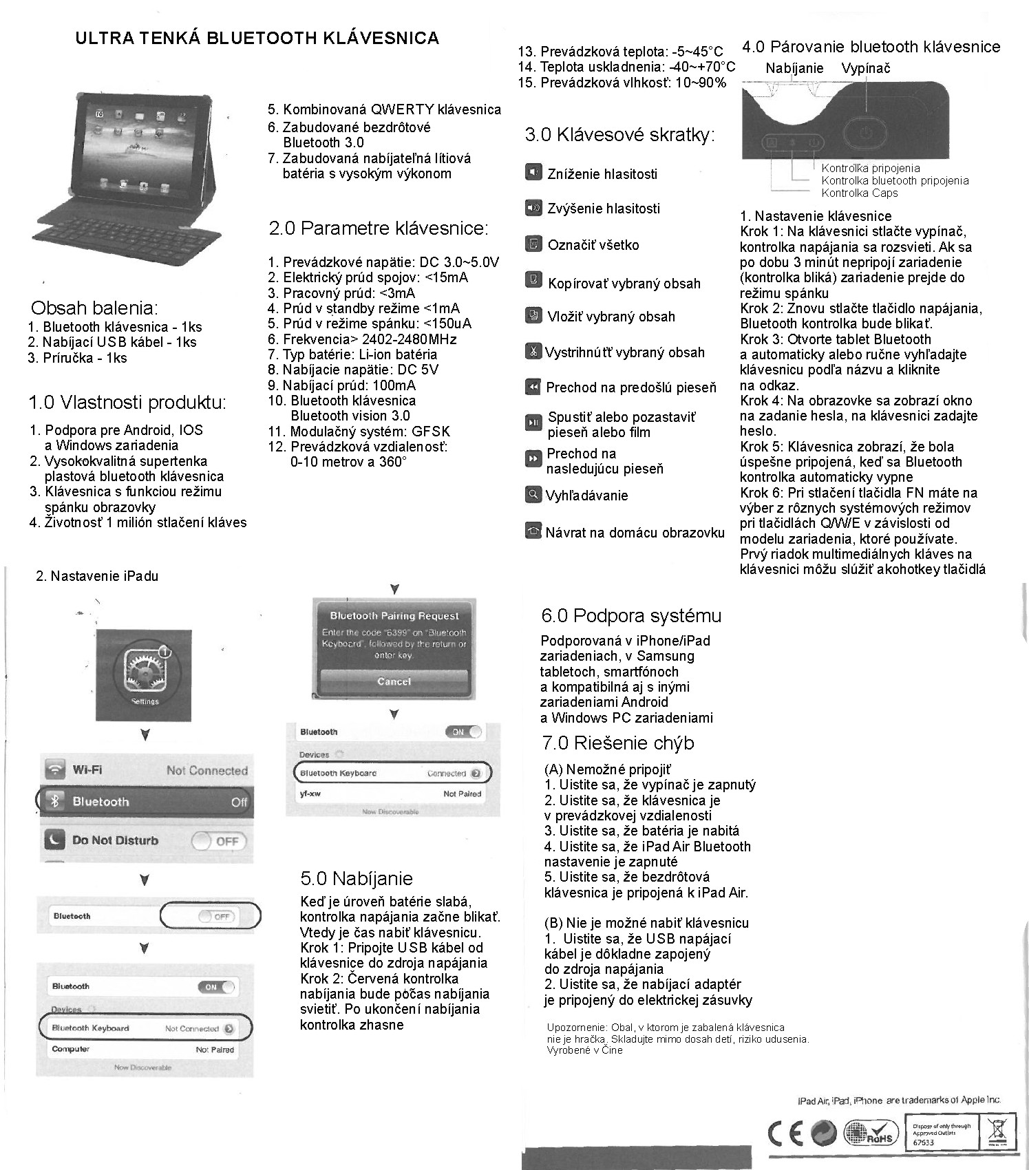 V sade - klávesnica, bezdrôtový prijímač USB, nabíjateľná batéria BL-5C 1080mAh 3,7V, kábel microUSB-USB;