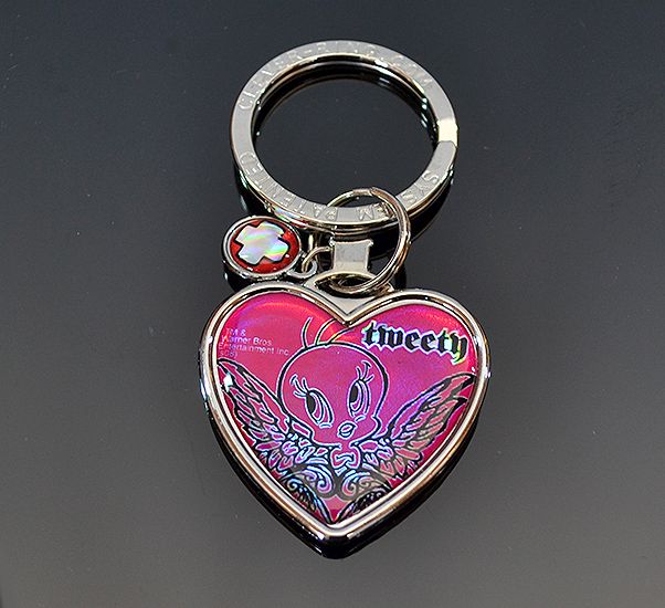 Prívesok s karabínku s rozprávkovou figúrkou Tweety v tvare srdca. Prívesok je zabalený v celofánovom vrecku. Prívesok je vhodný ako kľúčenka, kabelku, detskú aktovku alebo batoh, atď.