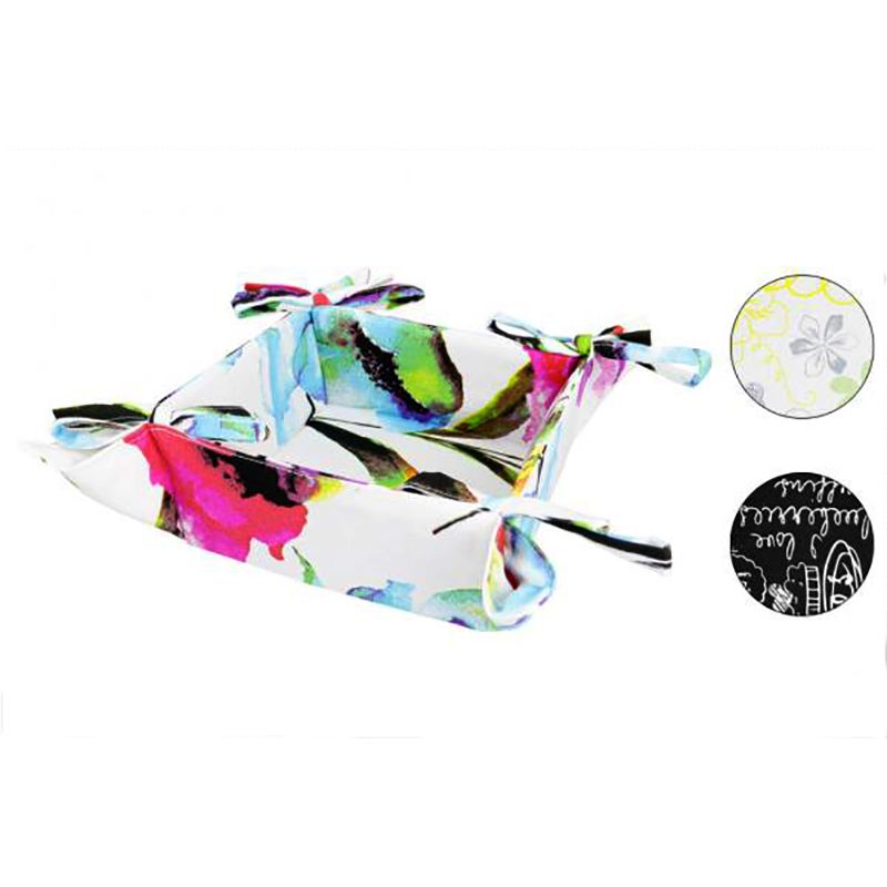 Košík na pečivo je vyrobený zo vzorovanej textílie. V domácnosti má bohaté využitie. Využijete ho na pečivo, ovocie, orechy, sladkosti, veľkonočné vajíčka a iné rôzne drobnosti. Na rohoch je uchytený z ozdobných šnúrok.