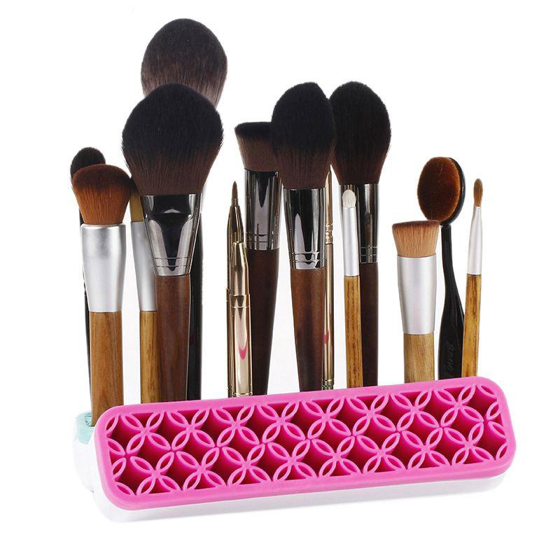 Vďaka tomuto organizéru už nikdy nebudete mať problém nájsť štetec na púder či pinzetu alebo nožničky na nechty. Organizér je multifunkčný a má veľmi široké použitie. Ženy ho zvyknú používať hlavne na kozmetické štetce, no vhodný je aj na uskladnenie zubných kefiek či rôznych kancelárskych potrieb. Vďaka otvorom rôznych veľkostí, ktoré umožňujú umiestnenie potrieb v tomto organizátore sa Vám konečne podarí mať všetko potrebné uložene na jednom mieste. Flexibilná silikónová podložka sa môže rozšíriť tak, aby vyhovovala všetkým veľkostiam štetcov na make-up či iným potrebám.