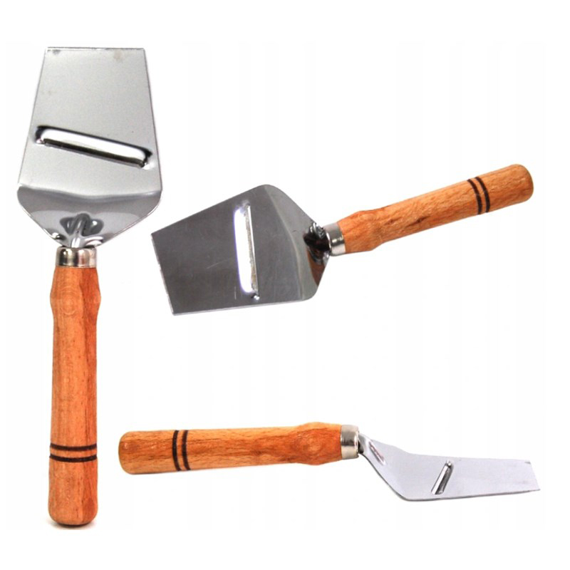 Nôž na syr je užitočný doplnok v každej kuchyni. Nepostrádateľný, ak chcete pripraviť rovnaké plátky mäkkého a tvrdého syra. Špachtľa je vyrobená z nehrdzavejúcej ocele a má pohodlnú drevenú rukoväť. Pohodlné na použitie a praktické v každej kuchyni.