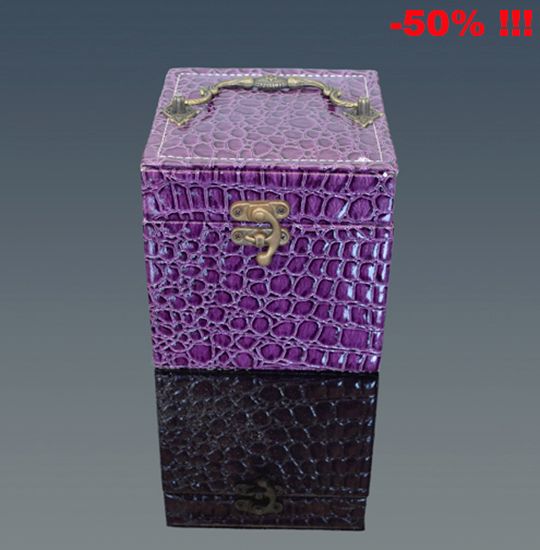 Jedinečná ponuka !!! Kufrík na šperky a bižutériu z farebnej ekokože fialovej farby. Kufrík sa skladá z troch poschodí, do ktorých si môžete ukladať šperky a bižutériu, ale aj malú kozmetiku. Na veku je zrkadielko. Elegantný darček pre ženy a dievčatá vysokej kvality. Rozmery kufríka sú 120 x 120 x 120 mm. Len do vypredania zásob.