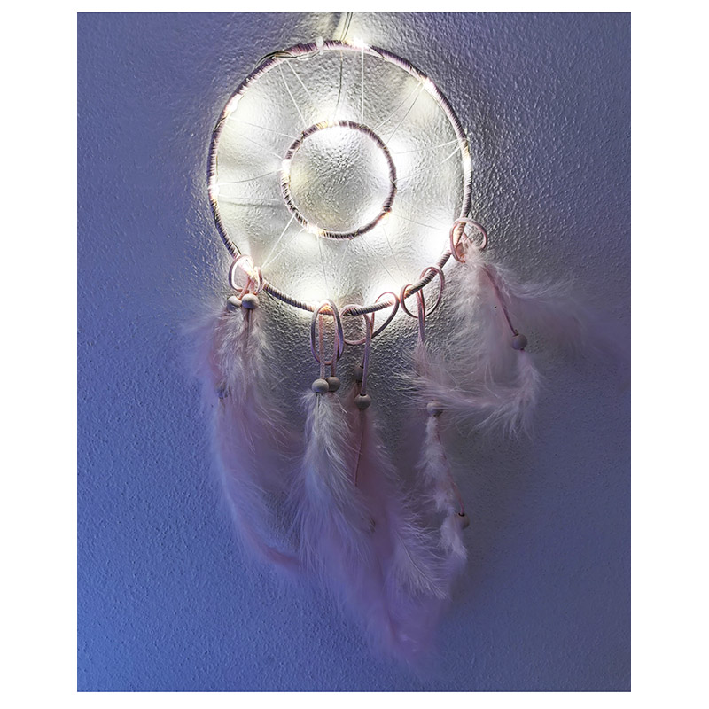 Lapač snov je pekný moderný doplnok a originálny darček. Tento navyše obsahuje LED svetielka, takže Vám počas večera môže krásne svietiť.