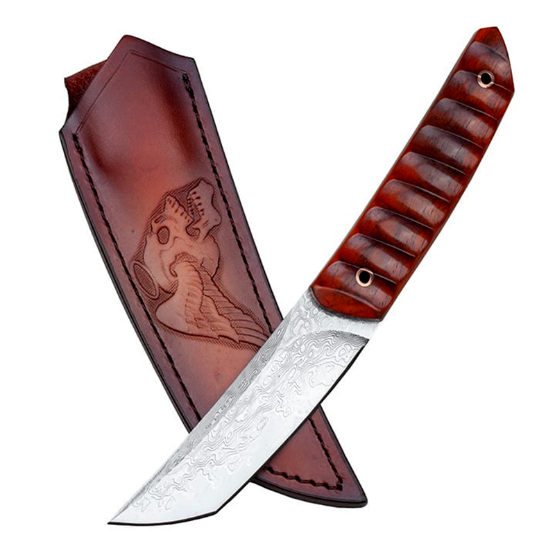 K nožu dostávate aj kvalitné a elegantné kožené púzdro z byvolej kože zdobené ozdobným ornamentom. Pútkom si ho môžete pripevniť na opasok.