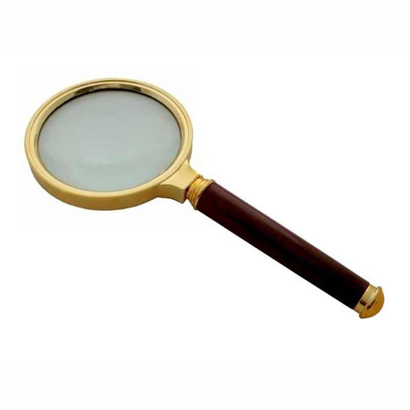 Luxusná lupa vyrobená, ktorá má pozlatené telo. Lupa je veľmi pevná, má hrubú sklenenú šošovku o priemere 60mm uloženú v obruči vyrobenej z pevného plastu.