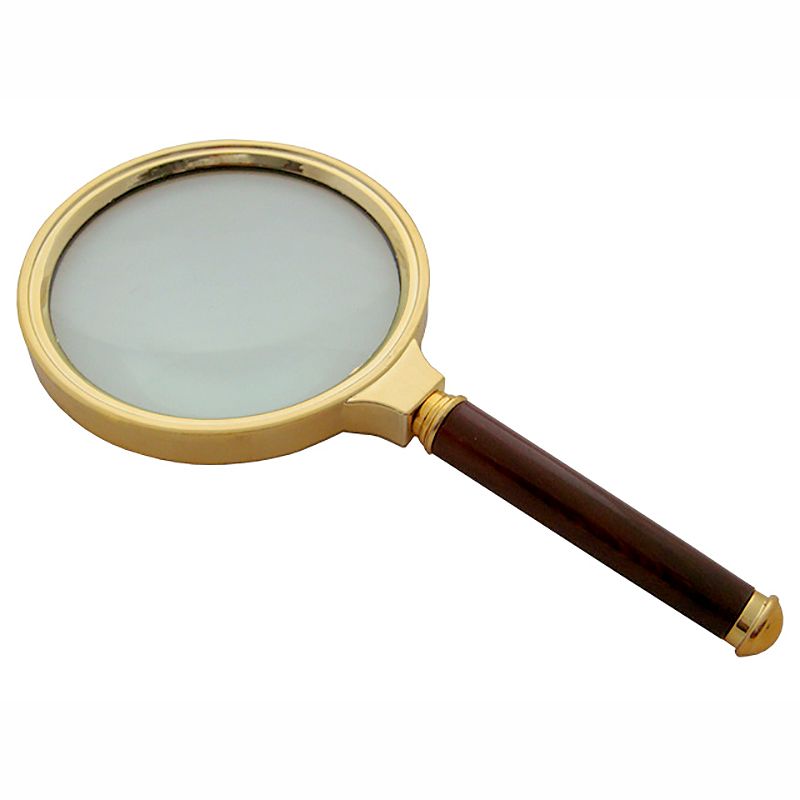 Luxusná lupa vyrobená, ktorá má pozlatené telo. Lupa je veľmi pevná, má hrubú sklenenú šošovku o priemere 60mm uloženú v obruči vyrobenej z pevného plastu.