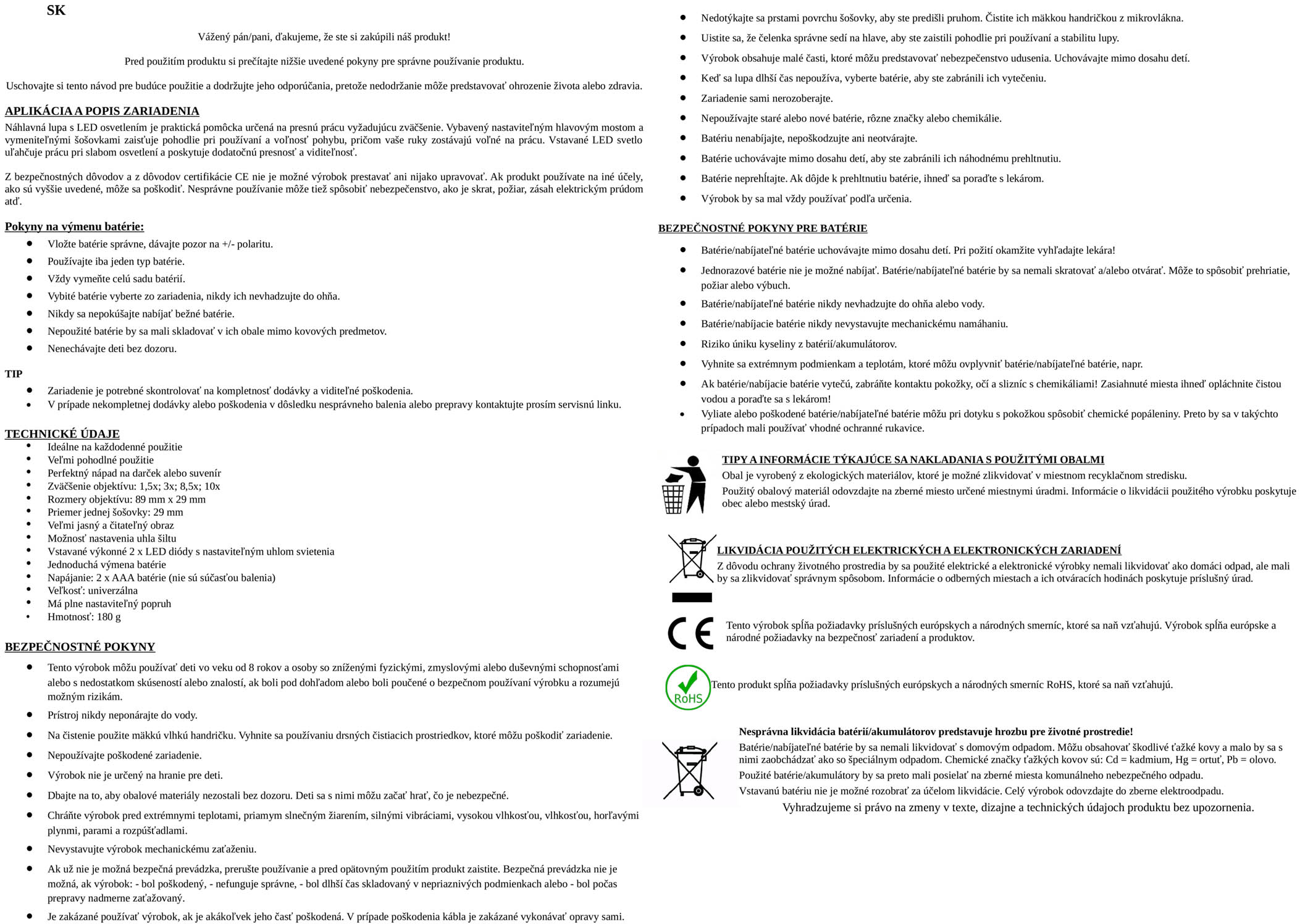 Táto náhlavná lupa s vymeniteľnými šošovkami a zabudovaným LED osvetlením je praktickým pomocníkom pre každého, kto potrebuje detailne sledovať malé predmety. Vďaka zväčšeniu 1,5×, 3×, 8,5× a 10× je ideálna pre klenotníkov, hodinárov, numizmatikov, technikov či domácich majstrov.