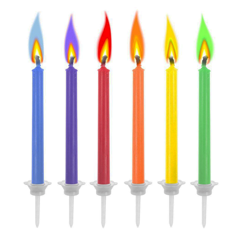 Magické narodeninové sviečky horiace farebnými plameňmi.Každá sviečka horí plameňom, ktorý jej farebne ladí.Nezabudnuteľné dojmy na narodeninovú tortu!Neodmysliteľný prvok každej narodeninovej oslavy.