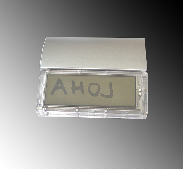 Atypický solárny držiak na menovku, vizitku alebo na prezentáciu loga zaujme svojím dizajnom. Držiak sa pripevňuje na odev pomocou dvoch magnetov. Do prednej časti vložíte menovku alebo logo, menovka vďaka solárnej energii prerušovane zobrazuje text na vizitke. Časový interval presvietenia je cca 1 sekunda. Menovka svojou výnimočnosťou pomôže prezentovať logo Vašej firmy alebo spoločnosti.