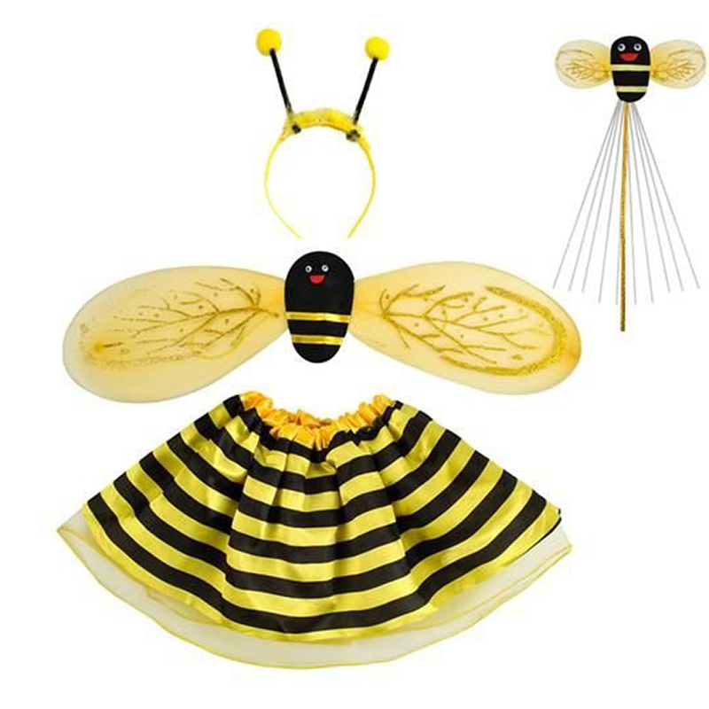 Krásny kostým včielky vhodný na karnevalové oslavy a detské party. Ide o set krídiel včely, čelenky, sukne a tykadiel. Konštukcia krídel je z drôtu, vďaka čomu pekne držia tvar. Čelenka s včelími tykadlami je vybavená zúbkami, preto sa jednoducho z vlasov nekĺže.