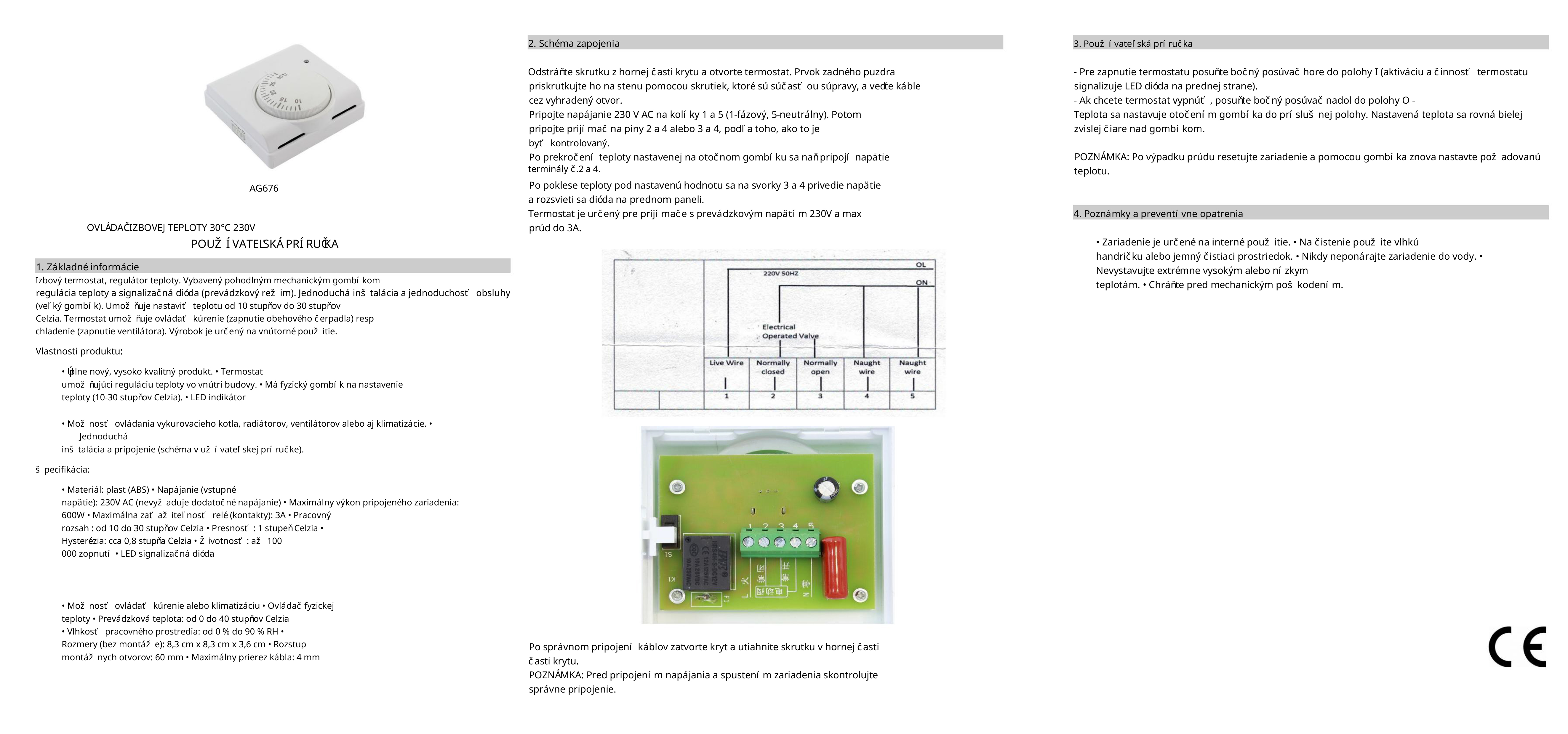 Nainštalujte termostat na stenu pomocou montážnych otvorov (schéma zapojenia je súčasťou balenia).