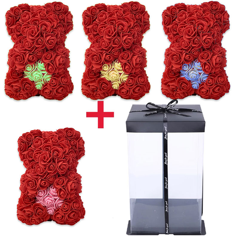 Ruže, z ktorých bol medvedík vyrobený, sú vyrobené z PE, vďaka čomu sú odolné a bez zápachu - nespôsobujú alergie. Je to skvelá alternatíva pre ľudí alergických na kvety. Medvedík je navyše zabalený v dekoratívnej PVC krabičke, čo znamená, že po objednaní darčeka k nemu nemusíte zháňať obal.