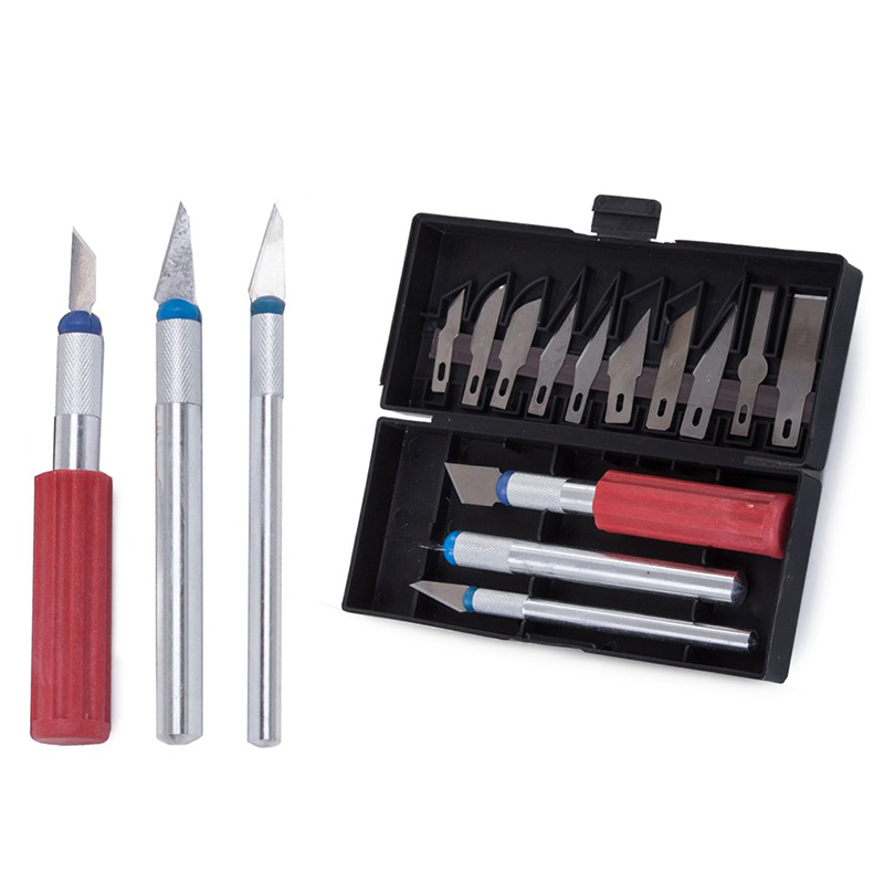 Sada skalpelov na modelárske účely s rôznymi tvarami ostria a s tromi rúčkami. Zabalené v kazete s magnetickým prúžkom. Navrhnuté pre starostlivú a precíznu prácu. Jednoduché použitie. Počet nadstavcov v sade - 13. Hmotnosť sady je 105 gramov.