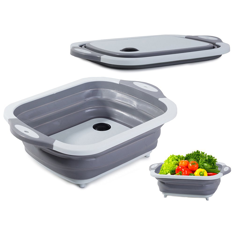 Tento multifunkčný kuchynský set pozostáva zo silikónovej misky, ktorá slúži aj ako prenosný turistický drez na umývanie riadu a podložky na krájanie. Na dne misky je odtok so silikónovou zátkou. Bez zátky miska poslúži aj ako odkvapkávač na riad.